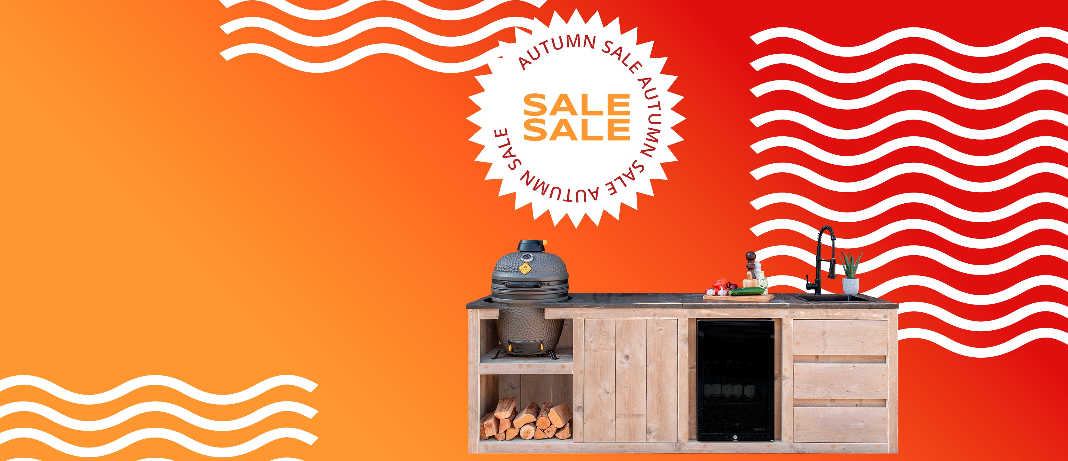 Stel jouw eigen buitenkeuken samen. Bepaal zelf de indeling, houtsoort en het blad.