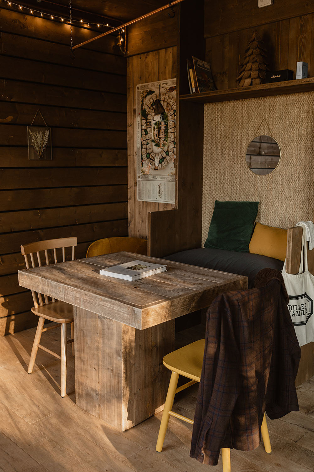 Für dieses Projekt durften wir (Schlaf-)Sofas, Küchen, Betten, Tische und Stühle herstellen. Die natürliche Optik des Gerüstholzes passt perfekt zu diesem Park und seiner Umgebung.